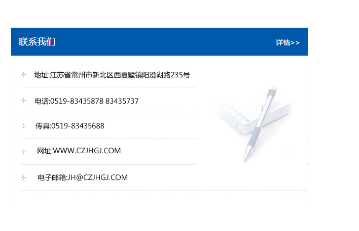 地址:常州市新北區友邦商務大廈1幢16、17層  電話:0519-85101652  傳真:0519-85112595  郵編:213022  網址:www_cz-jiayue_cn.xdbiotec.com  郵箱:xiajifengaa@163.com